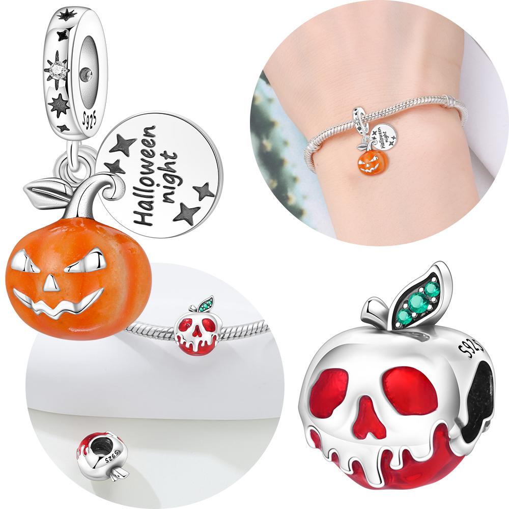 Original Charms Copper Luminous Halloween Pumpkin Car Pendant Red Epoxy Skull Apple Bead Fit Bracelet Women Jewelry Diy Gift