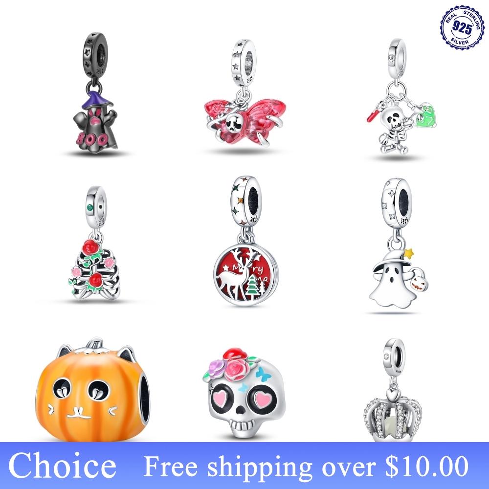 15 Style Halloween Series Copper Pendant Charms Pumpkin Skull Beads Fit Fine Bracelet Holiday Jewelry Gifts