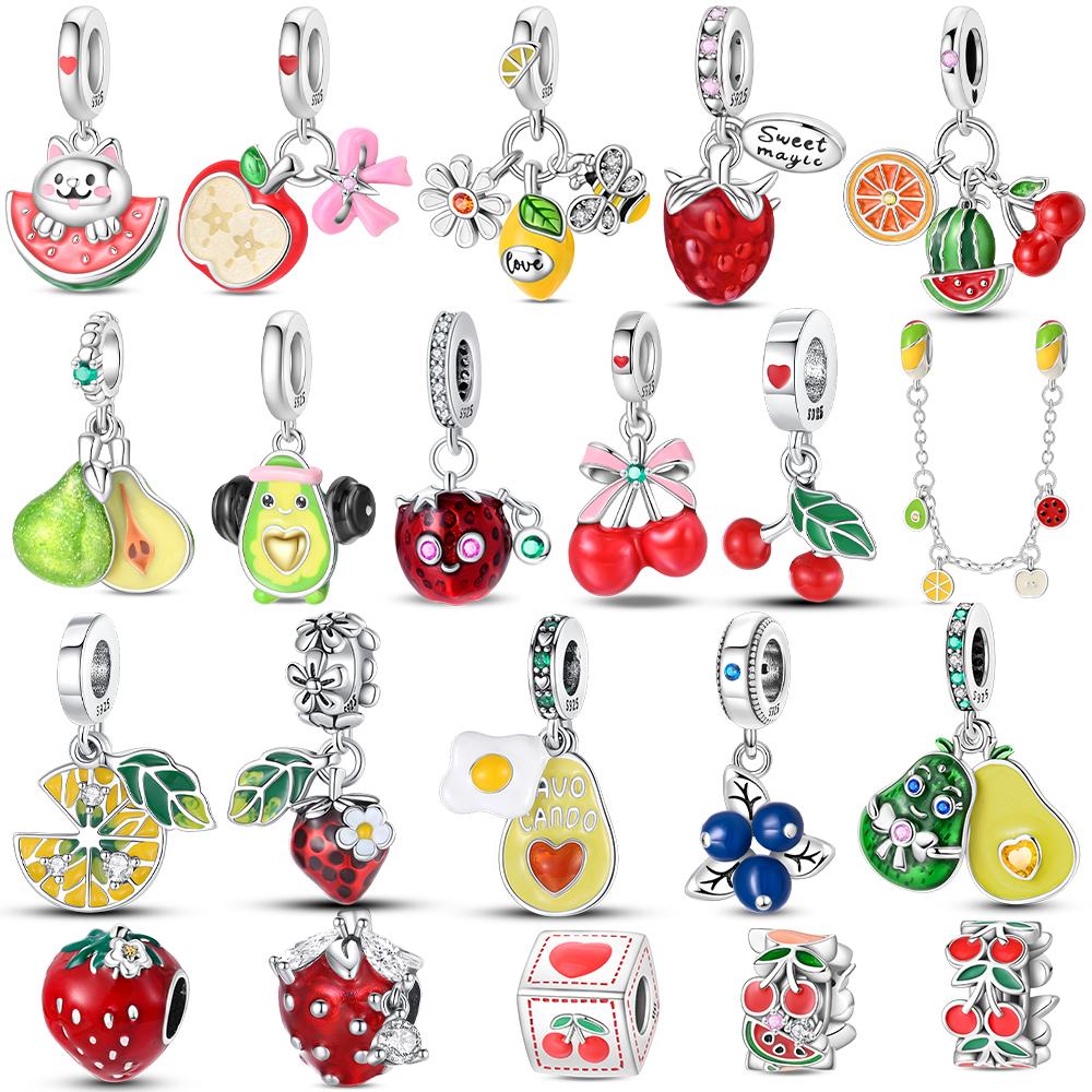 Cherry Fruit Series Charms New Copper Color Strawberry Beads Fit 3Mm Original Bracelets Diy Birthday Jewelry Gifts