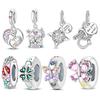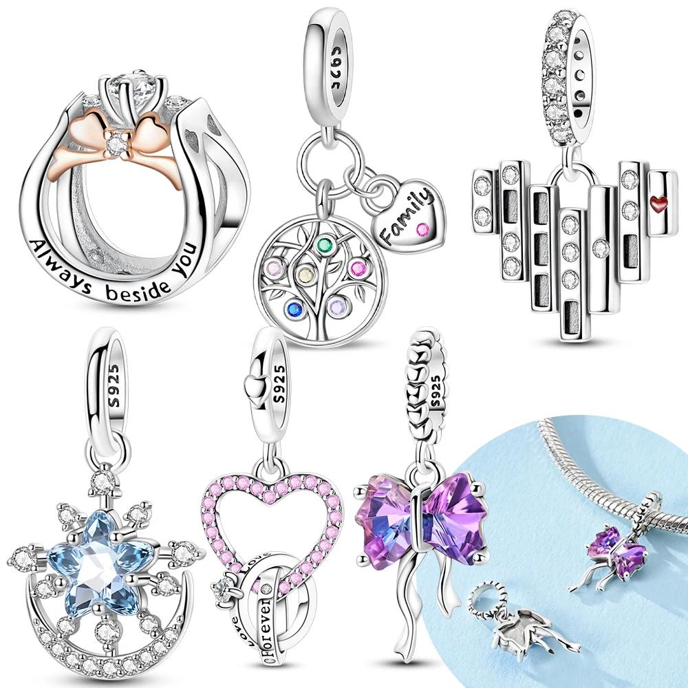Original Charms Copper Certified Pink Heart Bow Pendant Blue Stars Moon Beads Fit Bracelet Women Jewelry Diy Gift