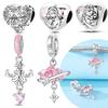 Fine Pink Zircon Heart Hugged Cat Dog Beads Copper Original Charm For Bracelets Necklace Accessories Jewelry Making