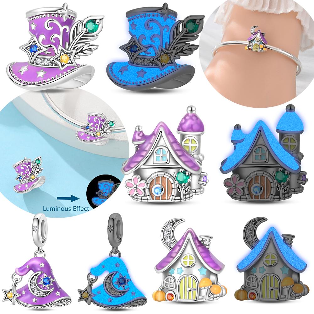 Sternenmagie Hut Anhänger Magisches Haus Blaues Nachtlicht Originale Kupferperlen Passend für Armband Zartes Accessoire Schmuck Feines Geschenk