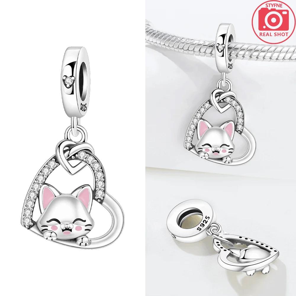 Elegant Original Charms Copper Animal Cat Dog Heart Embracing Mother Child Cats Beads Fit Bracelet Women Diy Valentine Gift
