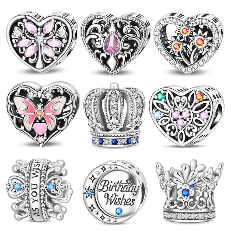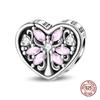 Original Charm Kupfer Palast Herzförmiger Rosa Perlen Charm Bead Passend für 3mm Original Armbänder für Damen DIY Feinschmuck Geschenke