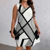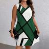 Women's Fashion And Casual Color Blocked Printed Sleeveless Dress In Large Size