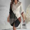 Damen Locker sitzendes V-Ausschnitt Langarmkleid Druck Arbeitshemdkleid