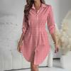 Damen Locker sitzendes V-Ausschnitt Langarmkleid Druck Arbeitshemdkleid