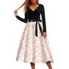 Damen Freizeitmode Blumendruck Welle V-Ausschnitt Vintage Kleid