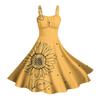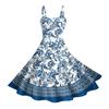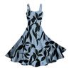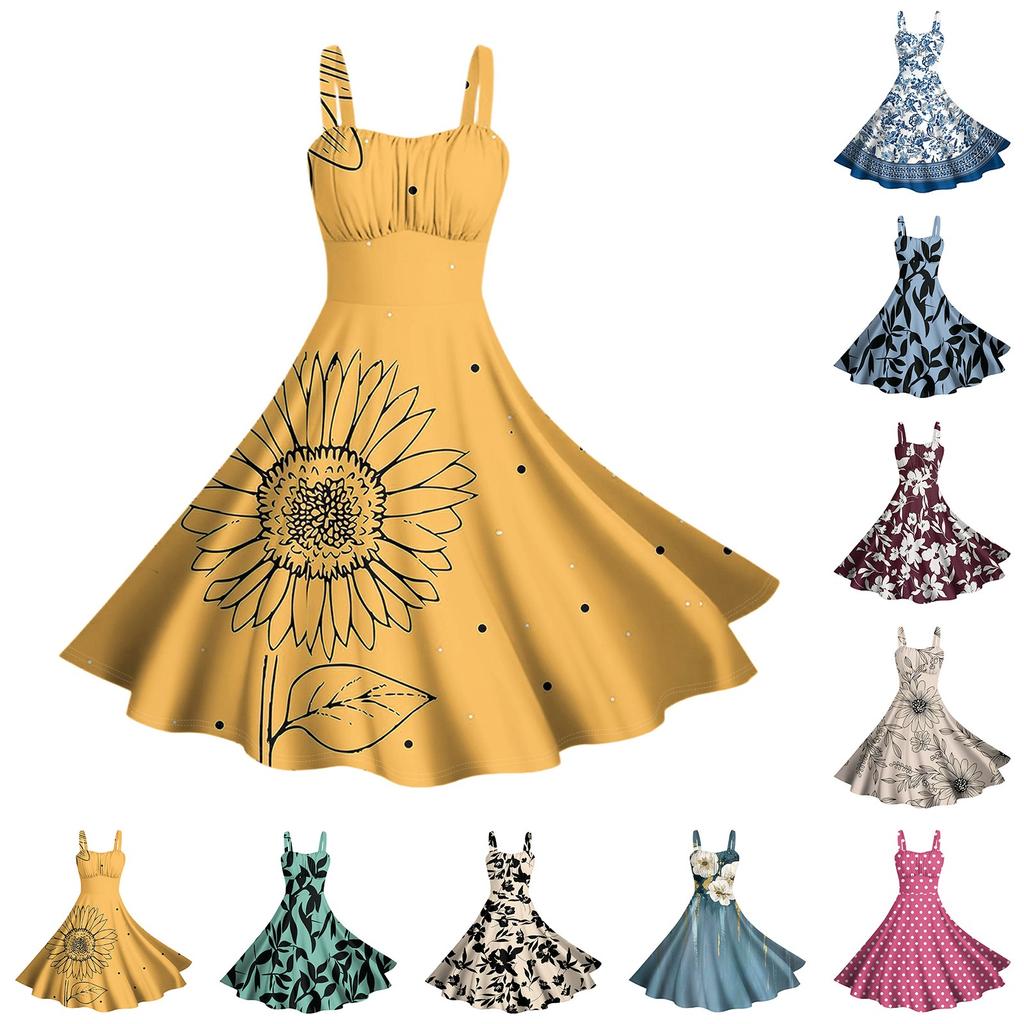 Damen Vintage Ärmellos Plissiert Patchwork Niedlich A-Linien Saum Blumendruck Kleider