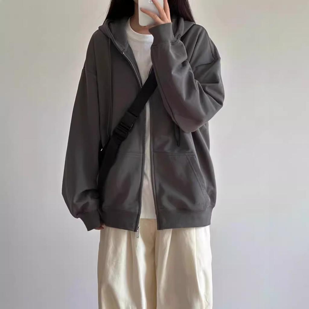 Lazy wind premium graue Strickjacke Damen lässig sportlich mit Kapuze Reißverschluss Top Cardigan vielseitig