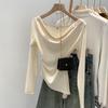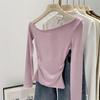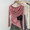 Schlank geschnittenes Schulteroberteil mit unregelmäßig schwingendem Kragen, Damen Herbst neu, süß und würzig, vielseitiges Unterhemd, langärmeliges T-Shirt