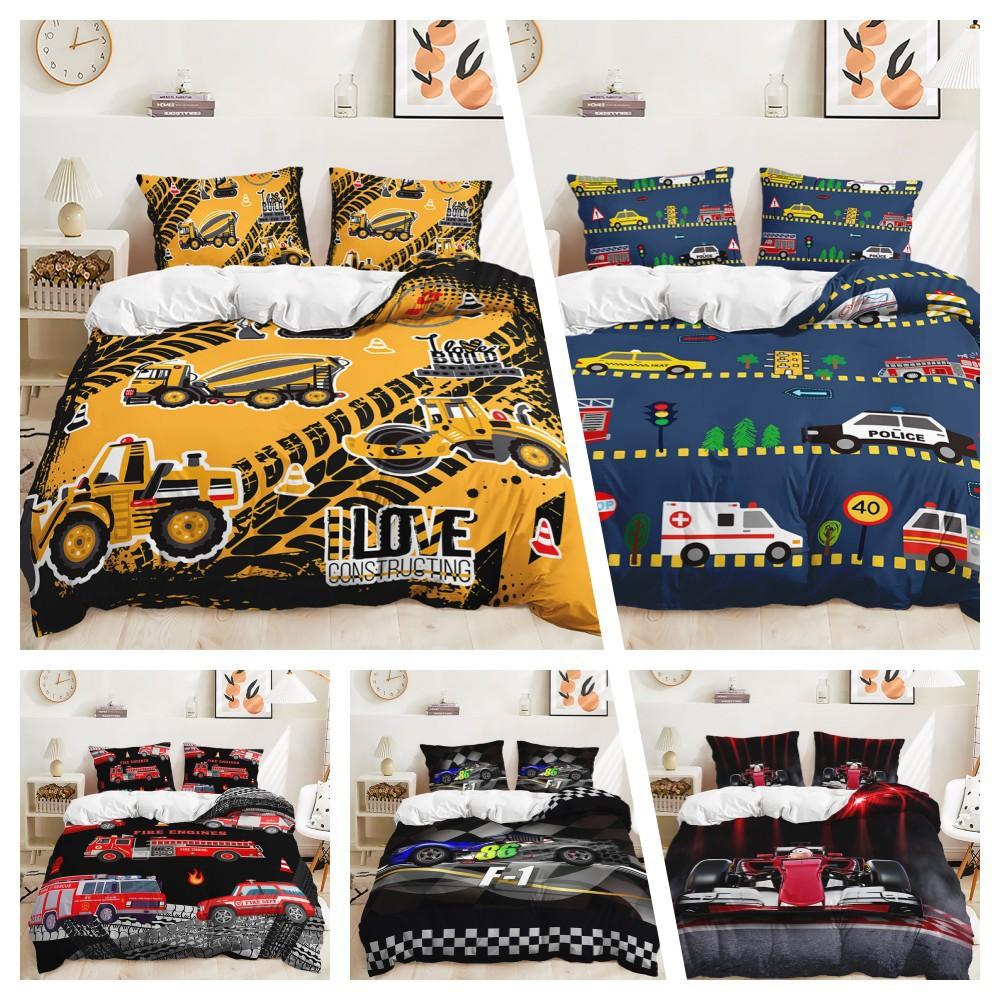 Bett Dreiteilige Konstruktion Autorennen Spiel Bettbezug 3D Digitaldruck Set
