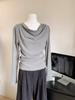 Swinging collar one-word shoulder long-sleeved T-shirt women's top spring new slim-fit Spice Girl bottoming shirt