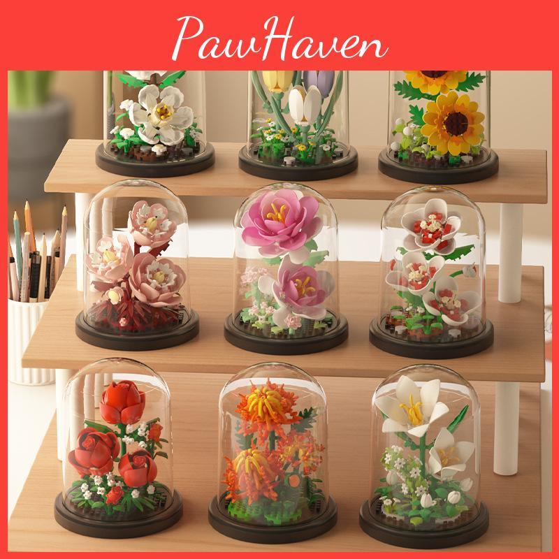 Crafted from high-quality ABS plastic, these exquisite building blocks come in a captivating array of vibrant colors and stunning floral designs, including sunflowers, roses, lilies, and many more.Each set contains between 128 to 800 pieces, offering a delightful challenge that nurtures cognitive skills, fine motor coordination, and patience.Imagine assembling a breathtaking sunflower with 250 pieces or a delicate rose with 152 pieces, each meticulously designed to simulate the natural beauty of real flowers.