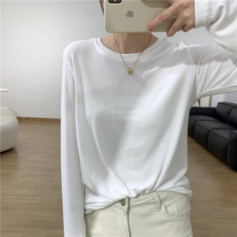 Slim-fit elastic mask shirt women's simple versatile top spring long-sleeved inner white bottoming shirt
