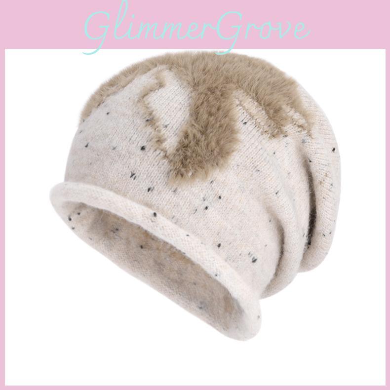 Fashion Plush Splicing Design Women Casual Knitted Hat For Cold Days