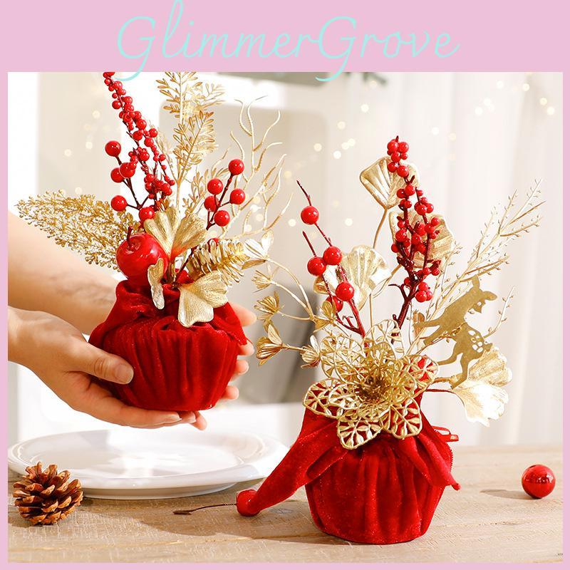 home decor, tabletop ornament, artificial flowers, DIY decorative piece, holiday decoration, festive home accessory, migration housewarming decor, Christmas tabletop figure