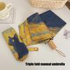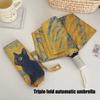 Gelb Blau Ölgemälde Katze Faltbarer Regenschirm Regen Sonne Dual-Use Automatischer Sonnenschirm Sonnenschutz Und UV-Schutz Tragbar