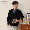 Komongboka Men's Cable Knit V-Neck 100% Wool Sweater