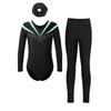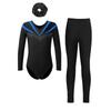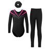 Mädchen Langarm V-Ausschnitt Glänzende Strasssteine Kontrastfarbe Gymnastik-Turnanzug Set Komplett mit Leggings Haarband