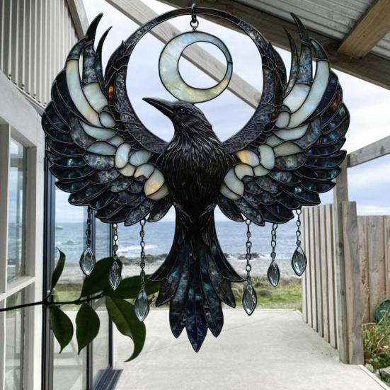 Dieser Acryl-Sonnenfänger mit Mondsichel und Rabe vereint auf wunderschöne Weise Mystik und Eleganz und zeigt einen Raben, der auf einer Mondsichel sitzt – Symbole für Weisheit, Freiheit und die bezaubernde Nacht.. Gefertigt aus hochwertigem, transparentem Acryl, bricht es Sonnenlicht, um atemberaubende Licht- und Schatteneffekte zu erzeugen, die jeden Raum aufhellen..