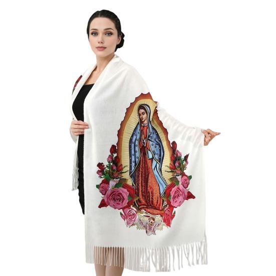 Göttlicher Komfort: Tauchen Sie ein in den weichen Luxus dieses eleganten Schals aus hochwertigem Kaschmir, der eine zarte Berührung und Wärme bietet, die den ganzen Tag anhält.. Ob Sie Gottesdienste besuchen, an Abendveranstaltungen teilnehmen oder einfach Ihrer Alltagskleidung einen Hauch von Anmut verleihen möchten, dieser Jungfrau Maria Schal bietet sowohl Komfort als auch Eleganz.