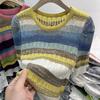 Dünnes Strick-T-Shirt mit hohlen Einsätzen und kurzen Ärmeln für Damen Sommer Bunt gestreift Puffärmel Kleines Shirt Oberteile Lässige Slim-Fit Pullover Tees