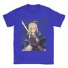 Erstaunliche Fate Stay Night Saber T-Shirts Herren O-Ausschnitt Baumwoll-T-Shirts Anime Kurzarm-Tees Übergröße Kleidung
