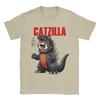 Herren Catzilla Lustige Katze Monster T-Shirts Reine Baumwollkleidung Kreative Kurzarm Rundhals T-Shirts Bedrucktes T-Shirt