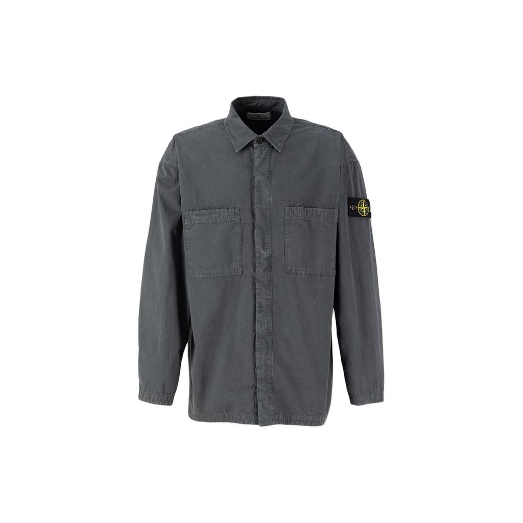 Stone Island FW23 Logo Badge Decorated Square Neck Button Straight Long Sleeve Shirt Men shirts Lead-Gray 7915112WN-V0162