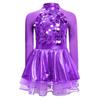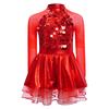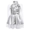 Mädchen Metallic Tutu Kleid Pailletten Durchsichtiges Mesh Langarm Design Schlüsselloch Rücken Funkelndes Tanzkostüm