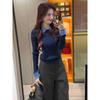 Olo Revers Kontrastfarbe Strickpullover Damen Herbst und Winter neu schlank geschnitten vordere Schulter weich wachsig langärmliges Innenoberteil Pullover