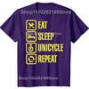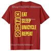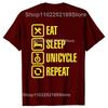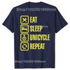 Lustiges Essen Schlafen Einrad Wiederholen Einradfahren Sport Grafik T-Shirts Herren Mode Lässiges T-Shirt 100% Baumwolle Locker Übergroßes T-Shirt