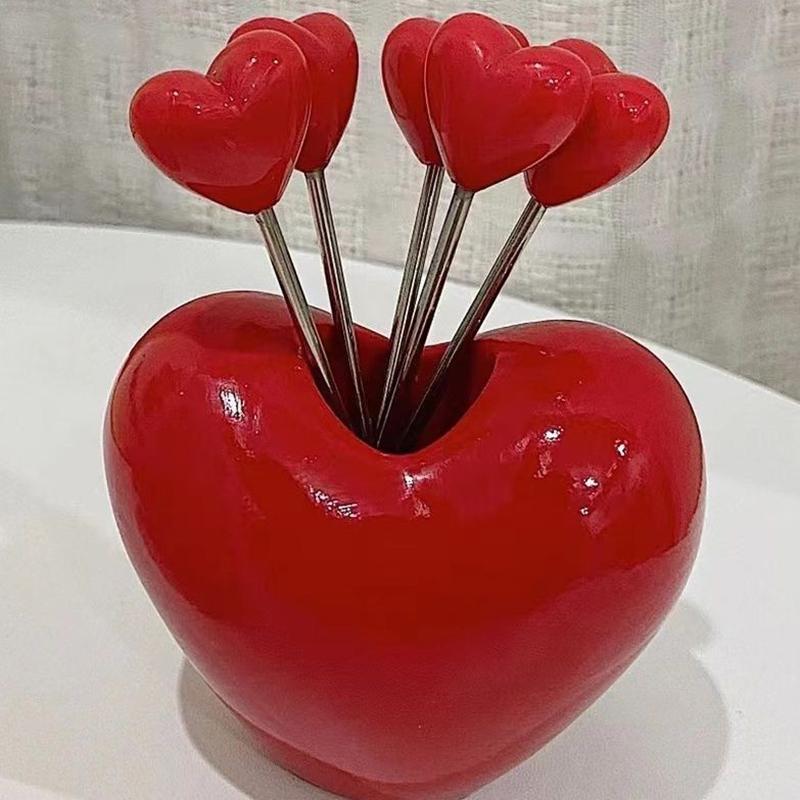 10 Stück Kreative Liebe Obstgabel mit Halter Niedliche Herzform Edelstahl Wiederverwendbare Metallspieße für Obst, Dessert, Vorspeisen