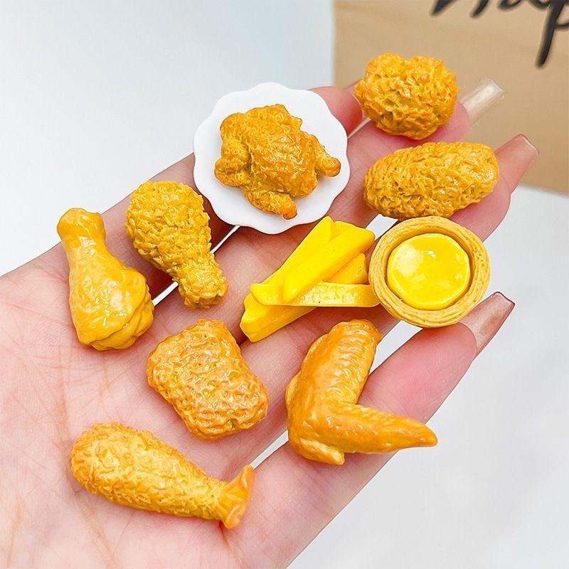 9pcs 1:6 Food Resin Potato Figurines Fried Chicken with Fries DIY Phone Case Decor Home Miniature Food for Play Decor Dollhouse