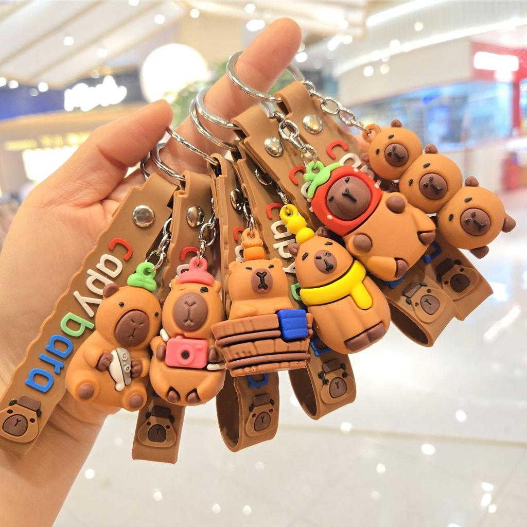 Capybara Serie Puppen Schlüsselanhänger, Kreativer Silikon Wasser Meerschweinchen Schlüsselanhänger Paar Taschenanhänger