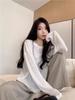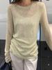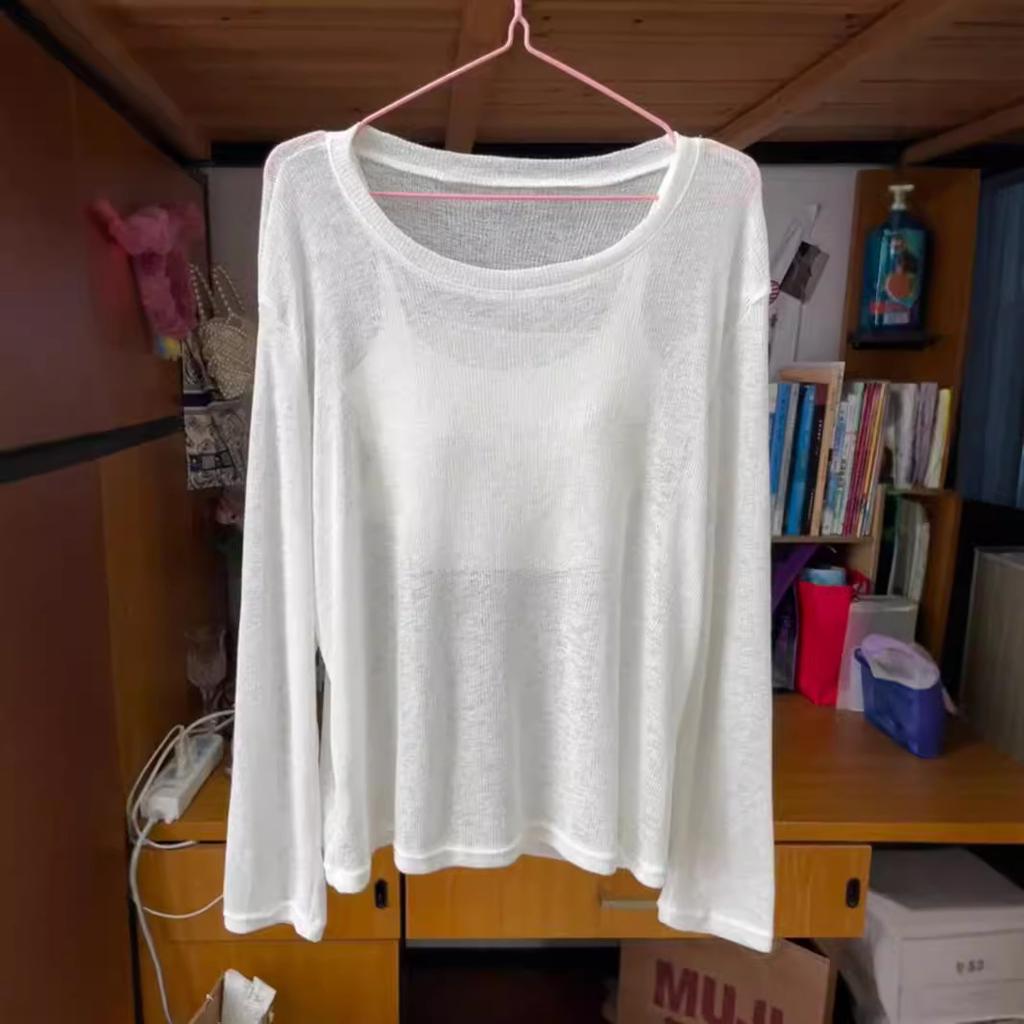 White sunscreen blouse women's lazy casual loose shirt early spring thin slightly transparent long-sleeved knitted top