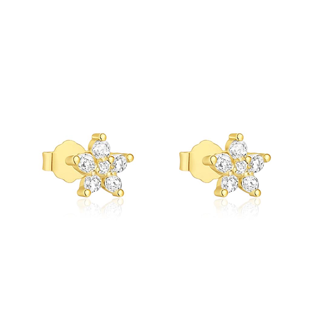 925 gold-plated sterling silver floral CZ stud earrings featuring six-stone cluster design. Perfect blend of timeless charm and modern sparkle.