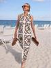 Sommer Baumwolle England Stil Blumendruck Ärmellos Langes Kleid Für Frauen Aprikose Lässiges Hochtaillenkleid