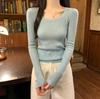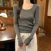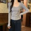 Premium Neck Long Sleeve Knitted Sweater Women's Spring Slim-Fit Texture Crew Neck Sweater with Bottom Top