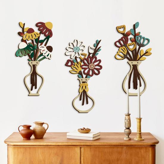 Verschönern Sie Ihren Wohnraum mit dieser Wandkunst aus Holzvasen, gefertigt aus umweltfreundlichem, hochwertigem Holz, das natürliche Maserung und Textur hervorhebt.. Für eine einfache Installation konzipiert, enthält es Montagenägel für ein schnelles, problemloses Aufhängen ohne zusätzliches Werkzeug..