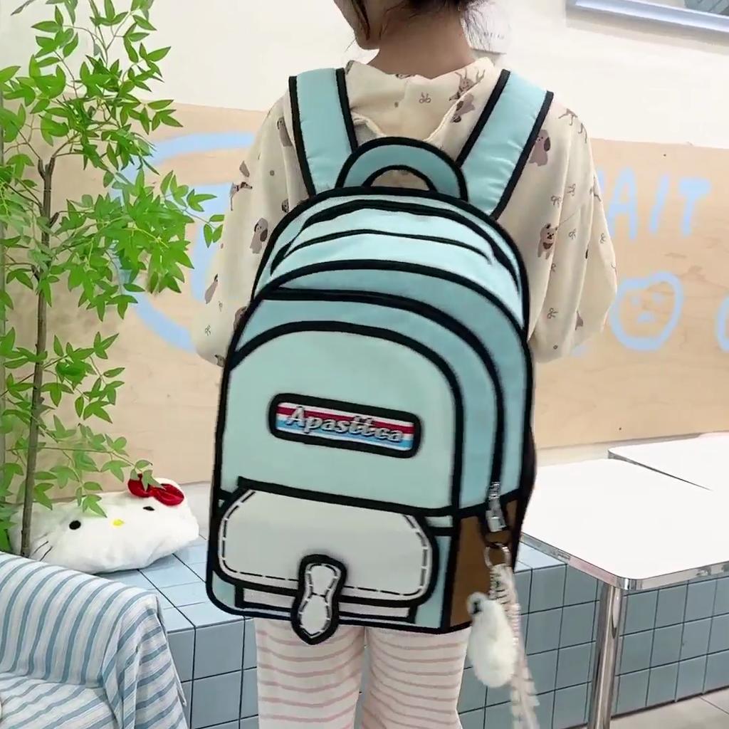 Rucksack mit großem Fassungsvermögen, 2D, Cartoon, Stereo, Schultasche für Studenten