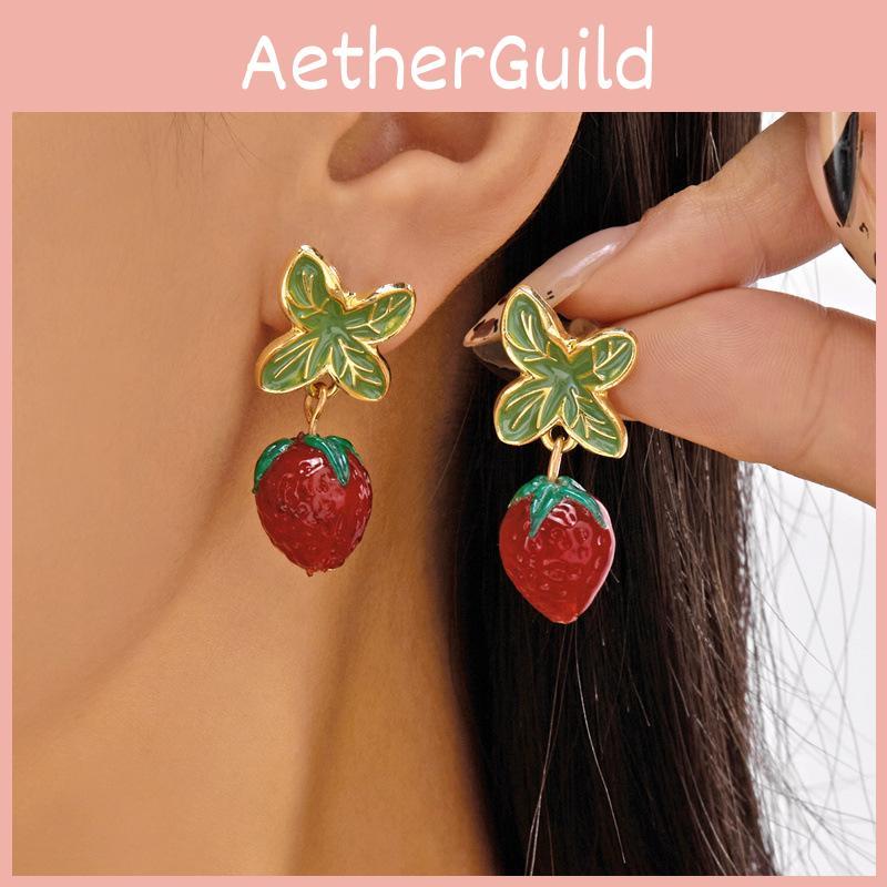Christmas Strawberry Pendant Earrings With Zinc Alloy Dangle For Women And Men