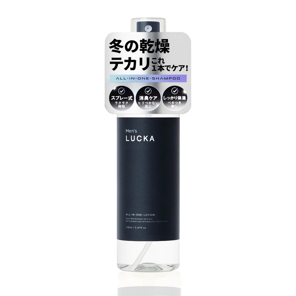 [Bring clean and confident skin to men.] LUCKA is a highly moisturizing all-in-one lotion specifically designed for men, addressing specific skin concerns. It provides comprehensive care for mature men's skin, including dryness, shine, visible pores, and post-shaving damage. This spray-type lotion allows for quick and easy moisturizing, even on busy mornings or when you're on the go. Its non-greasy yet deeply hydrating formula leaves skin feeling clean and healthy. Formulated with highly moisturizing ingredients, including hyaluronic acid, collagen, and placenta extract, it prevents dryness and rough skin, maintaining long-lasting moisture. It also contains deodorizing ingredients to suppress masculine odors and sweat odors, making it a multi-purpose product that can be used on the face, neck, and body. It can also be used as a fragrance spray or body mist, creating a clean, radiant scent that leaves a lasting impression. Supervised by a professional esthetician with 20 years of experience, it is luxuriously formulated with beauty ingredients such as niacinamide (vitamin B3), placenta, hyaluronic acid, and collagen. It provides firmness, elasticity, and clarity, and provides the **anti-aging care (moisturizing care according to age)** that is necessary for aging men's skin. Suitable for all skin types, including dry, sensitive, and oily skin.