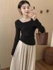 Spring gentle wind one-word shoulder knitted top women's slim pure desire sweater temperament fashionable bottoming shirt