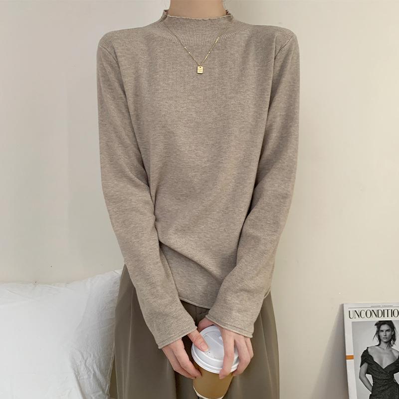 Soft waxy semi-turtleneck bottoming shirt women's autumn and winter loose inner top basic casual and thin knitted sweater