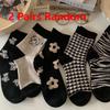 2/5 Pairs Women's Cute Little Bear Mid-Calf Socks Fashionable Flower Floral Prints Soft Comfortable Spring Autumn Casual Socks