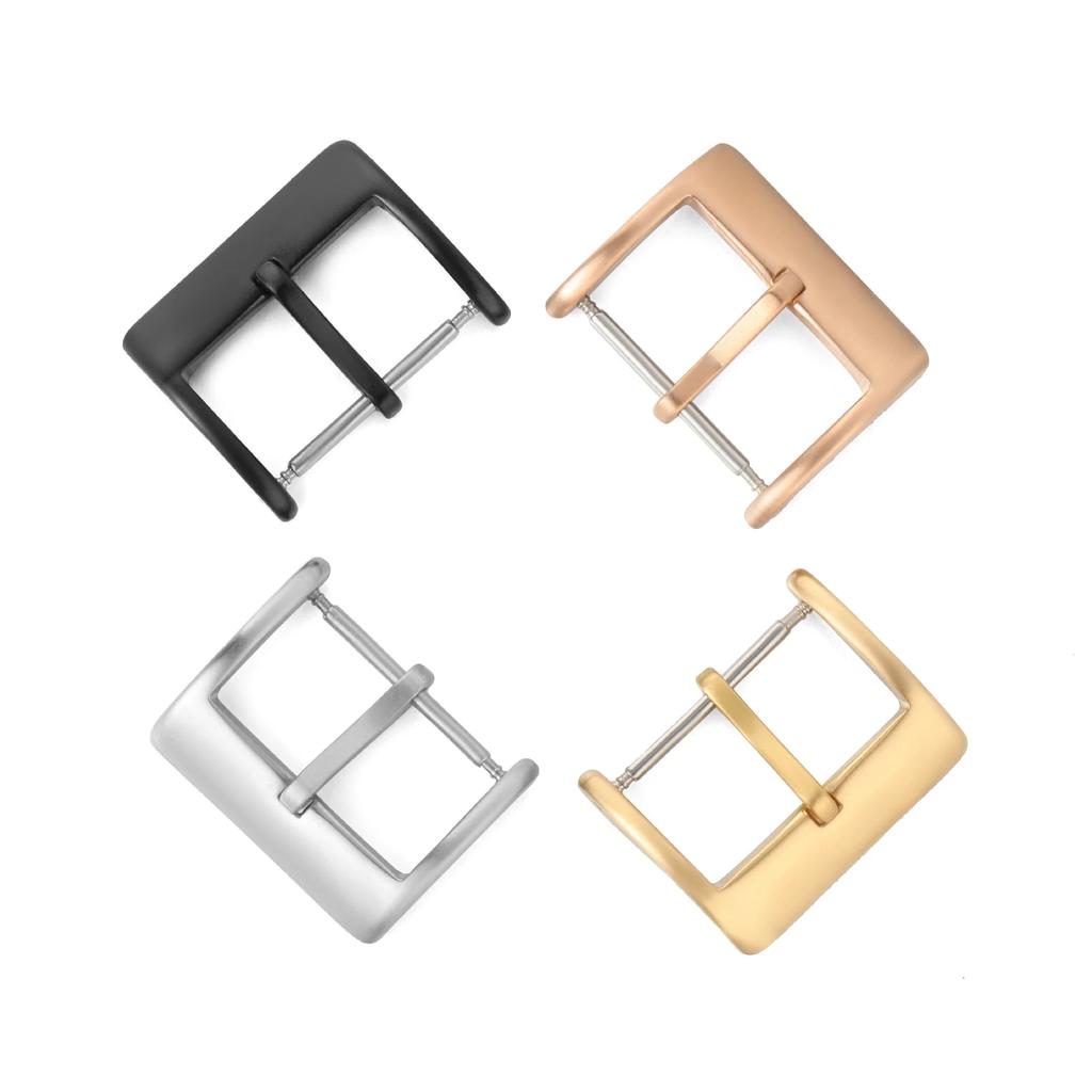 Watch Band Metal Buckle 16 18 20 22mm Strap Solid Square Button Silver Black Rose Gold Stainless Steel Matte Polished Clasp