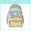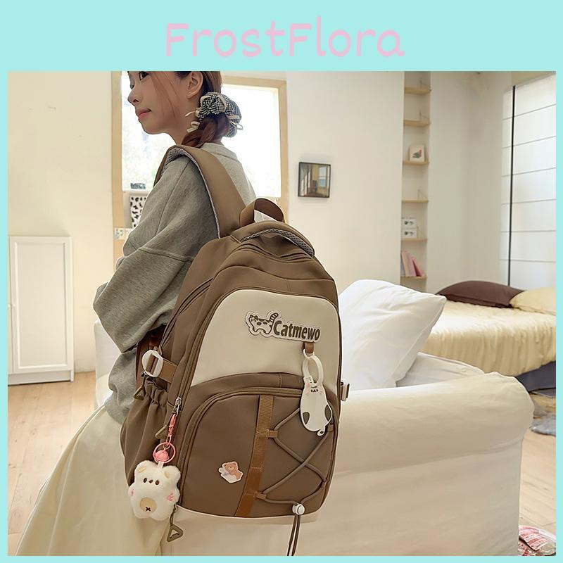Modischer Farbblock-Buchstaben-Katzenmuster-Schülerrucksack mit Anhänger für den täglichen Gebrauch