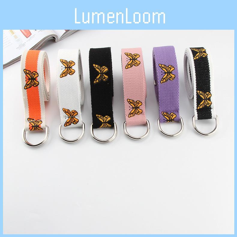 Stylish Canvas Waist Belt With Butterfly Design Double Ring Buckle For Casual Streetwear